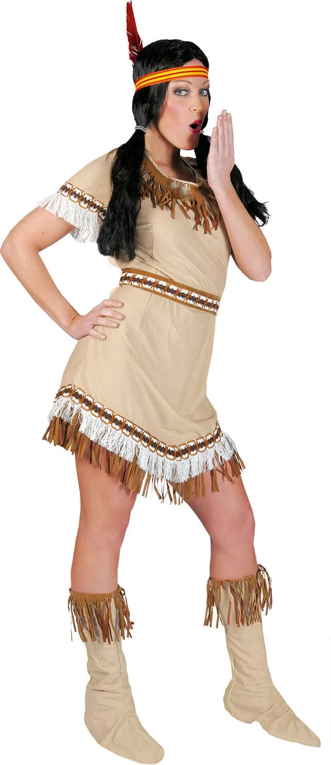 Tijdens de Carnaval breng jij de bleekgezichten het hart op hol in je beige/bruine korte Indiaan jurk met franjes
