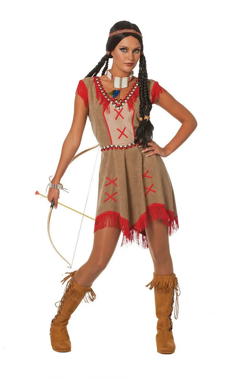Gelukkig kun je goed omgaan met pijl en boog en tomahawk. Dat zul je nodig hebben om de cowboys van je af te houden als je in dit Indiaanse Minehaha Kuis Kind kostuum op het Wilde Westen feest verschijnt. Je bruine met fraaie rode franjes versierde kleding maakt jou tot een bijzonder aantrekkelijke indiaan die moeilijk te weerstaan zal zijn. Maar geen paniek dus. Staan de toenadering je niet aan dan pak je je wapens op en leer je de opdringerige mannen een lesje. Aan jouw lijf geen polonaise.