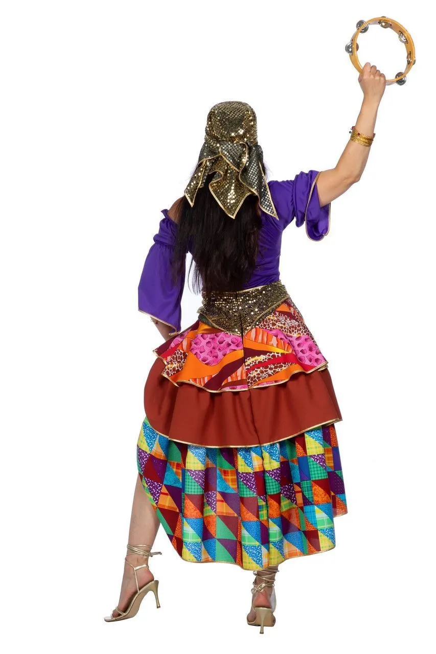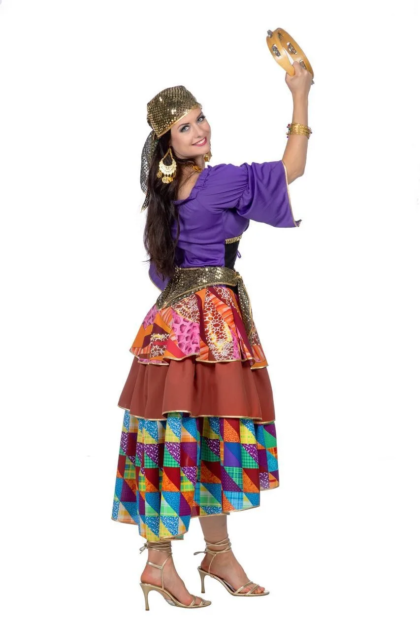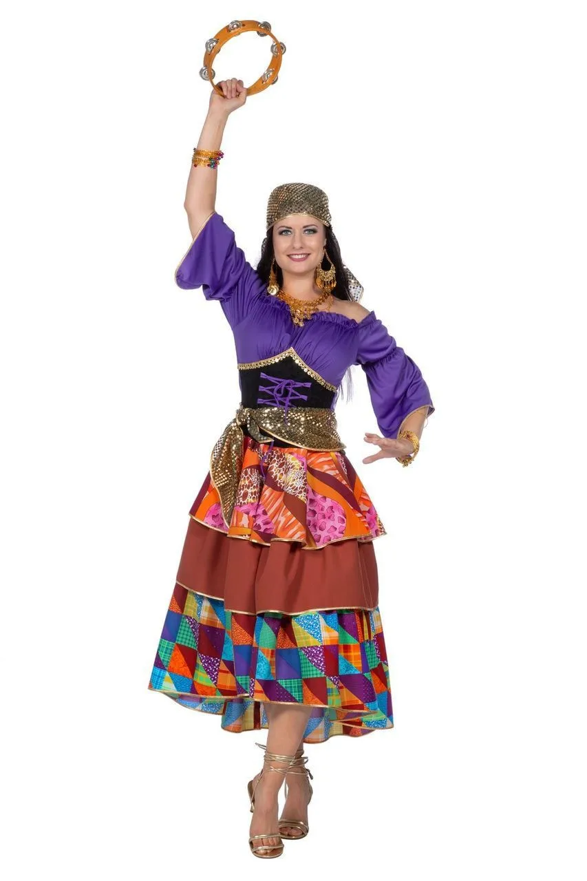 - De zigeunerin/waarzegster bestaat uit een jurk en een hoofddoek van verschillende kleurrijke stoffen.